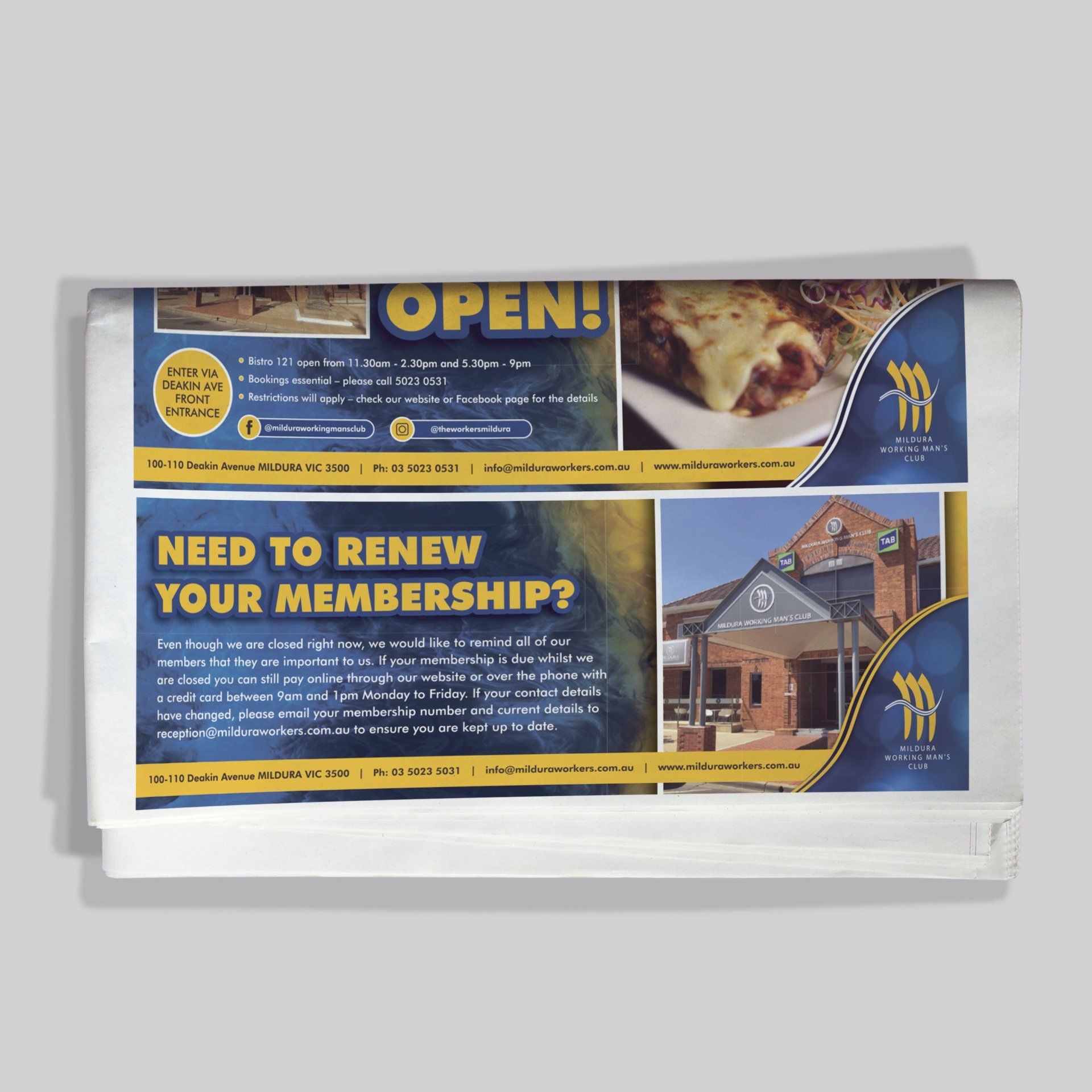 Various creative works including in-house posters, press adverts, website and social media graphics as well as menus and member promotional artwork.