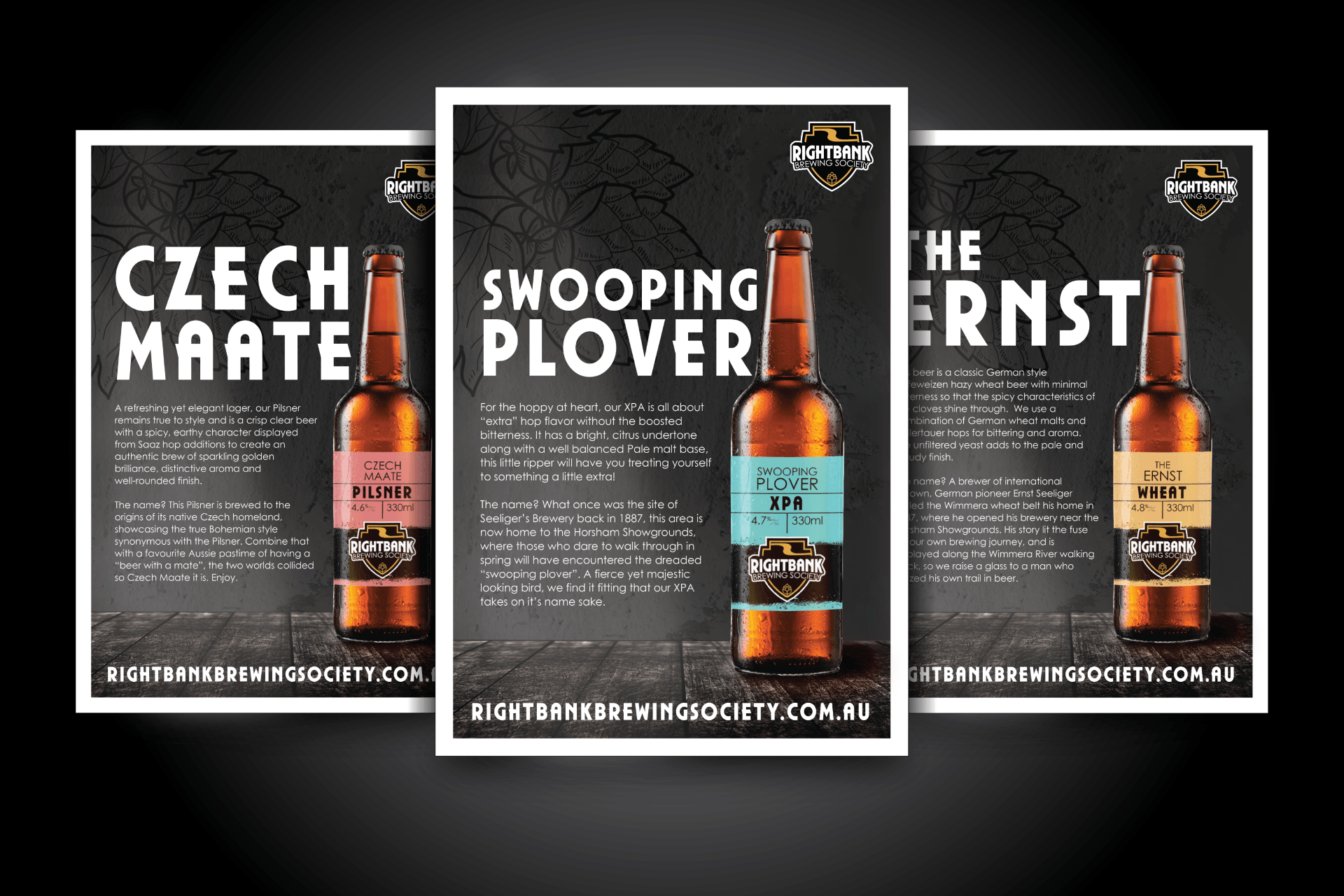 Logo and conceptual development for a nano-brewery in Horsham VIC. Rollout included beer bottle labels, merch and informational brew cards.