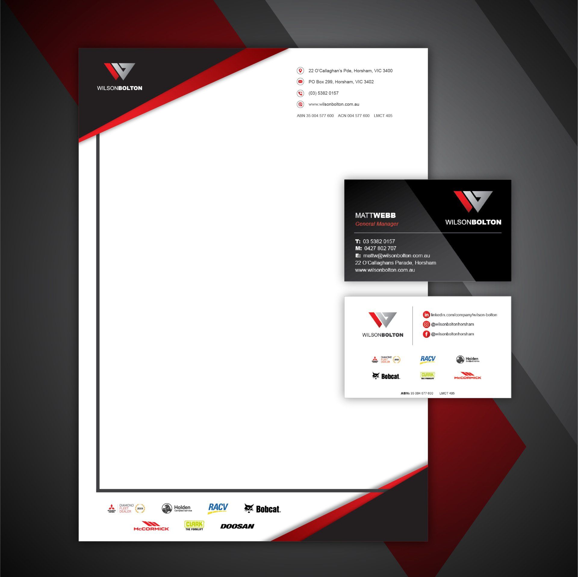 Full branding roll-out included business cards, letterheads, vehicle and shop signage, email signatures, fleet and produced brochures, social media graphics and new website page sliders.
